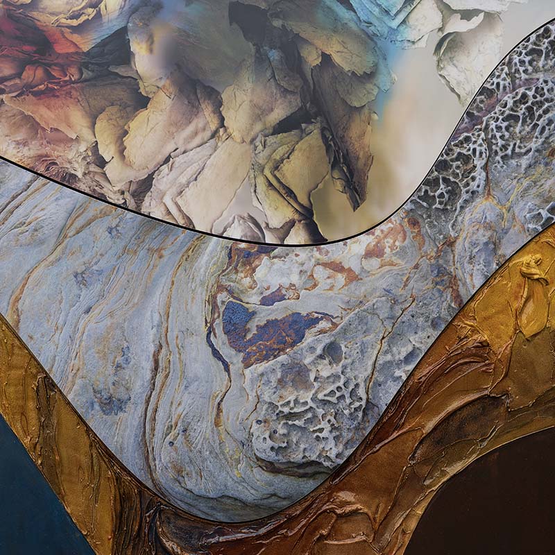 Camilla Grace’s approach to art goes beyond traditional painting or photography. She combines abstract painting with original photographs of natural textures. These photos are carefully edited digitally, then printed on metal with the help of our team at Print 2 Metal.