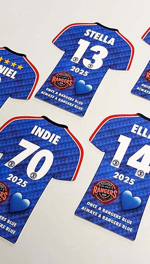 One of the parents came to us with a unique idea: a personalised memento for every player and coach that celebrated their season. The design matched the team colours and with precision CNC cutting, a soccer shirt shape included the individual player’s name and number. To make them easy to display, we added an easel on the back so they could stand proudly on a shelf or desk.